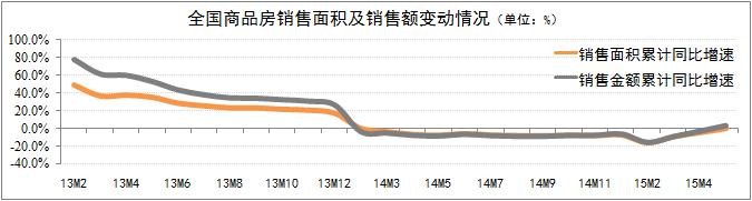 發稿時間:2015-06-15全國商品房銷售市場明顯回暖。國家統計局統計數據顯示:5月份全國商品房銷售面積累計增速同比下降0.2%,降幅環比收窄4.6個百分點;銷售額實現2014年初以來首次正增長,累計同比增速為3.1%。銷售市場回暖主要體現在40個重點城市,非重點城市的投資開發及銷售增速仍呈現下滑趨勢。研究認為,銷售市場回暖的主要原因在于國家政策調控作用引導了市場預期的轉變。