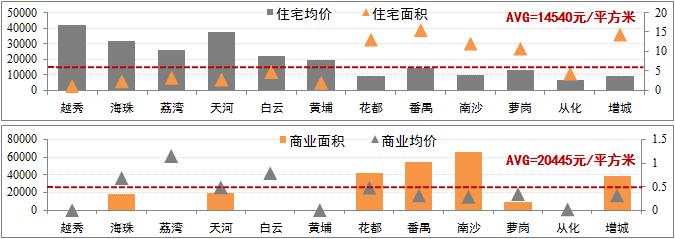 廣州房地產銷售市場活力理性增強。住宅方面:4月份均價14540元/平方,環比小幅下降1.2%;增城均價9566元/平方,增速基本持平;全市銷售面積激增66%。商業方面:4月份均價為20445元/平方,環比大幅下降27%,但銷售面積上漲了18%。總體而言,當期廣州房地產銷售市場活力明顯增強,房價水平理性維持。