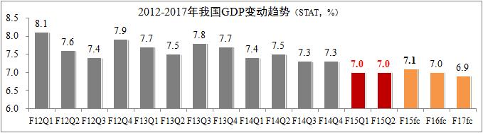 發(fā)稿時間:2015-07-22國家統(tǒng)計局最新公布數(shù)據(jù),2015年上半年我國GDP同比增速為7%,其中第一季度和第二季度同比增速均為7%,經(jīng)濟運行趨于穩(wěn)定。世界銀行在7月上旬公布的《中國經(jīng)濟簡報》預測,2015年中國經(jīng)濟增速為7.1%,隨后三年將按0.1個百分點的速度回落。總體而言,未來幾年我國經(jīng)濟增速將呈現(xiàn)逐步放緩的趨勢,其主要原因取決于結(jié)構(gòu)性改革進程。