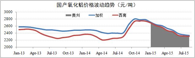 發稿時間:2015-08-22國產價格繼續下浮。報告期內,國產氧化鋁價格仍維持繼續下滑的基本趨勢,但整體降幅有所收窄。截至8月19日,國產日均價為2,325元/噸,月化同比下浮2.2%。其中,西南地區報價2,285元/噸,月化同比下浮0.9%;貴州報價2,285元/噸,月化同比下浮1.7%。目前,國產氧化鋁價格上浮機制尚未形成,預計第三季度氧化鋁價格將維持在2,250-2,450元/噸的均衡水平。