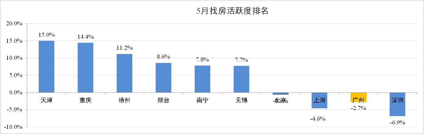 據安居客發布的數據顯示,5月全國用戶找房需求上升至62.4%。一線找房需求持續下跌。二線城市由于人才政策出臺的原因找房熱度上揚。