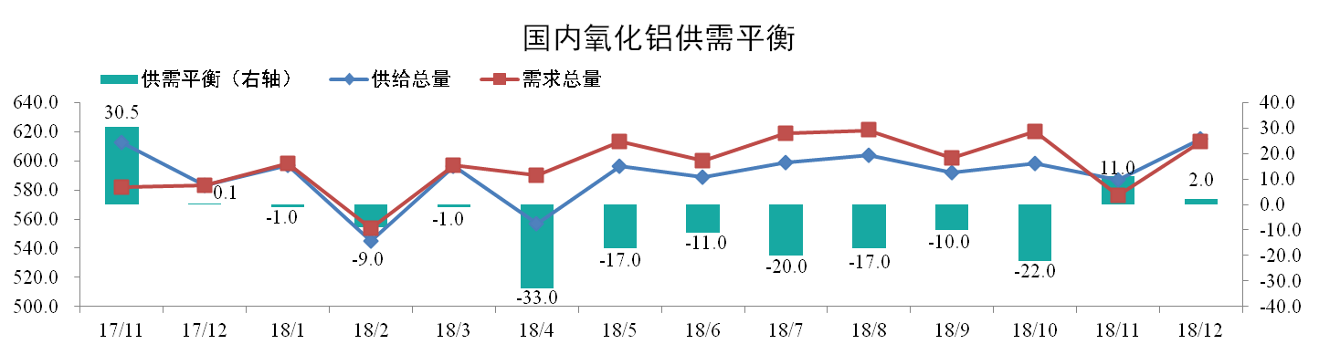 分析認為:12月礦石供應逐漸穩定,加之利潤驅使,氧化鋁產量有所增加,下游需求依舊疲軟,氧化鋁供給過剩。1月氧化鋁價格將下行至臨界點,部分企業將出現適度減產,但需求仍處弱勢,預估供給過剩。