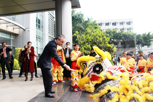 良辰吉時(shí),葉董事長(zhǎng)帶領(lǐng)干部員工共同祈福,隨后,葉鵬智董事長(zhǎng)、吳秋顏董事、吳作榮理事長(zhǎng)、夏文鋒監(jiān)事長(zhǎng)、黃丹華董事、葉鵬勇董事分別為六頭祥獅點(diǎn)睛。