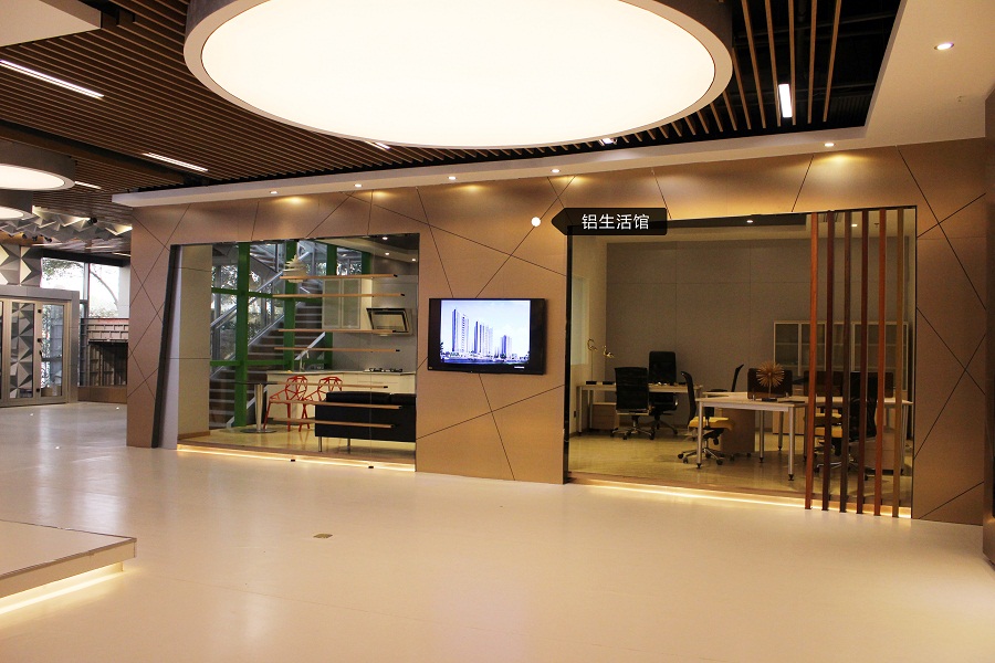 廣鋁文化廳以簡潔大方的質感設計風格,大膽運用了“廣鋁黃”和“廣鋁灰”兩種VI主色調,盡顯穩重、進取,創意,從立體視覺空間賦予每位觀眾最為直接的思想沖擊,鏗鏘有力,而又溫和自然。與廣鋁文化廳所不同的是,鋁生活館采用了現實主義設計理念,分別從建筑材和工業材兩個角度賦予鋁產品最為直觀的展現手法,同時植入了象征性和意識流兩種現實主義基因,從生活的角度改寫了鋁產品給人冰冷的傳統色澤。擁有國內外最為完整的鋁全產業鏈是廣鋁集團的核心競爭優勢之一,同時也是廣鋁集團經營發展理念的重要體現。